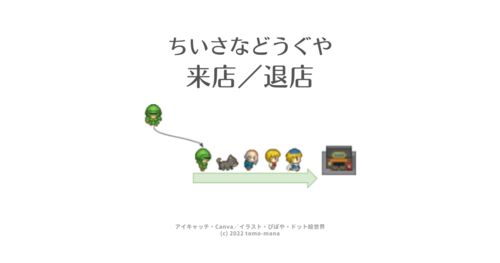 お客さんが来店する処理について、備忘の為にまとめました。 来店/退店の流れ 開店 ニーズの生成(開店後の来店):T1 行列 来店/退店 お店が閑散とした状態(一時的な待ち):T2 閉店:T3 実装例 使用したドット画について 来店/退店の流れ 来店/退店の…