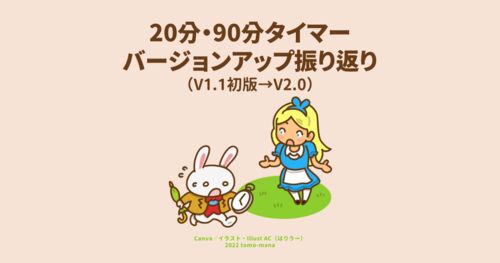 今回はバージョンアップということで、時間をかけずさっくり振り返り。 スケジュール かかった日数 苦労した点 これまでの経験が活きた点 今後の予定 タイマーについて 創作活動全般について 所感 参考 初版リリース時の振り返りは以下の記事(こちらはけっ…