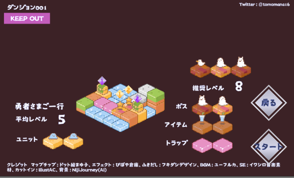 unity1weekのテーマ「つたえる」にちなんで、ダンジョンの管理者である魔王から部下に伝令を出す(つたえる)イメージで作ったのですが、肝心のストーリーパートが未着手のまま開発期限を迎えました。